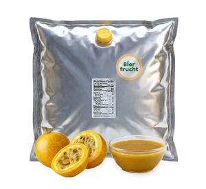 Bierfrucht presents our 100% natural Passion Fruit Purée 44 Lb bag in box Perfect for adding vibrant color and authentic flavor to your culinary and beverage creations.